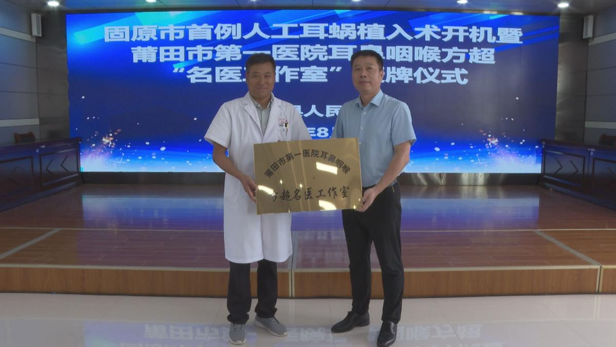 在第八個(gè)中國醫(yī)師節(jié)即將來臨之際,我院“組團(tuán)式”幫扶醫(yī)療隊(duì)的積極推動(dòng)下,8月7日,一場(chǎng)意義非凡的儀式在寧夏固原市西吉縣人民醫(yī)院舉行--固原市首例人工耳蝸植入術(shù)開機(jī)及莆田市第一醫(yī)院耳鼻咽喉方超名醫(yī)工作室正式成立。